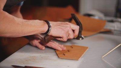 Using specialized tools to create precise holes for stitching, ensuring strong seams and a professional finish wallet.