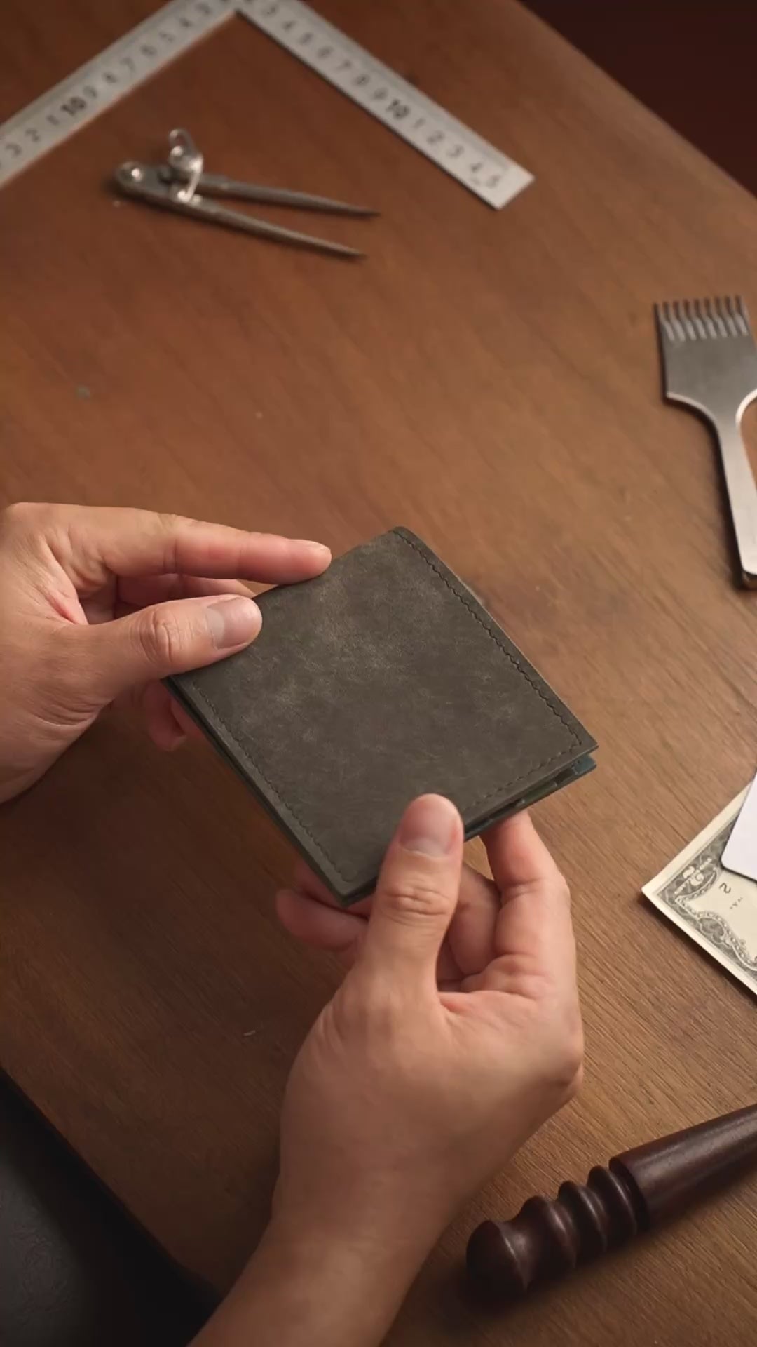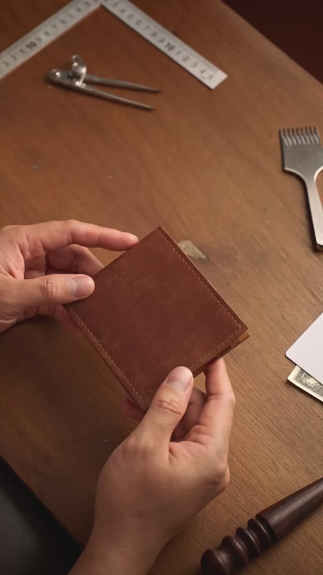 Creates a polished, rounded finish on leather edges, enhancing both the aesthetic appeal and durability of the wallet.