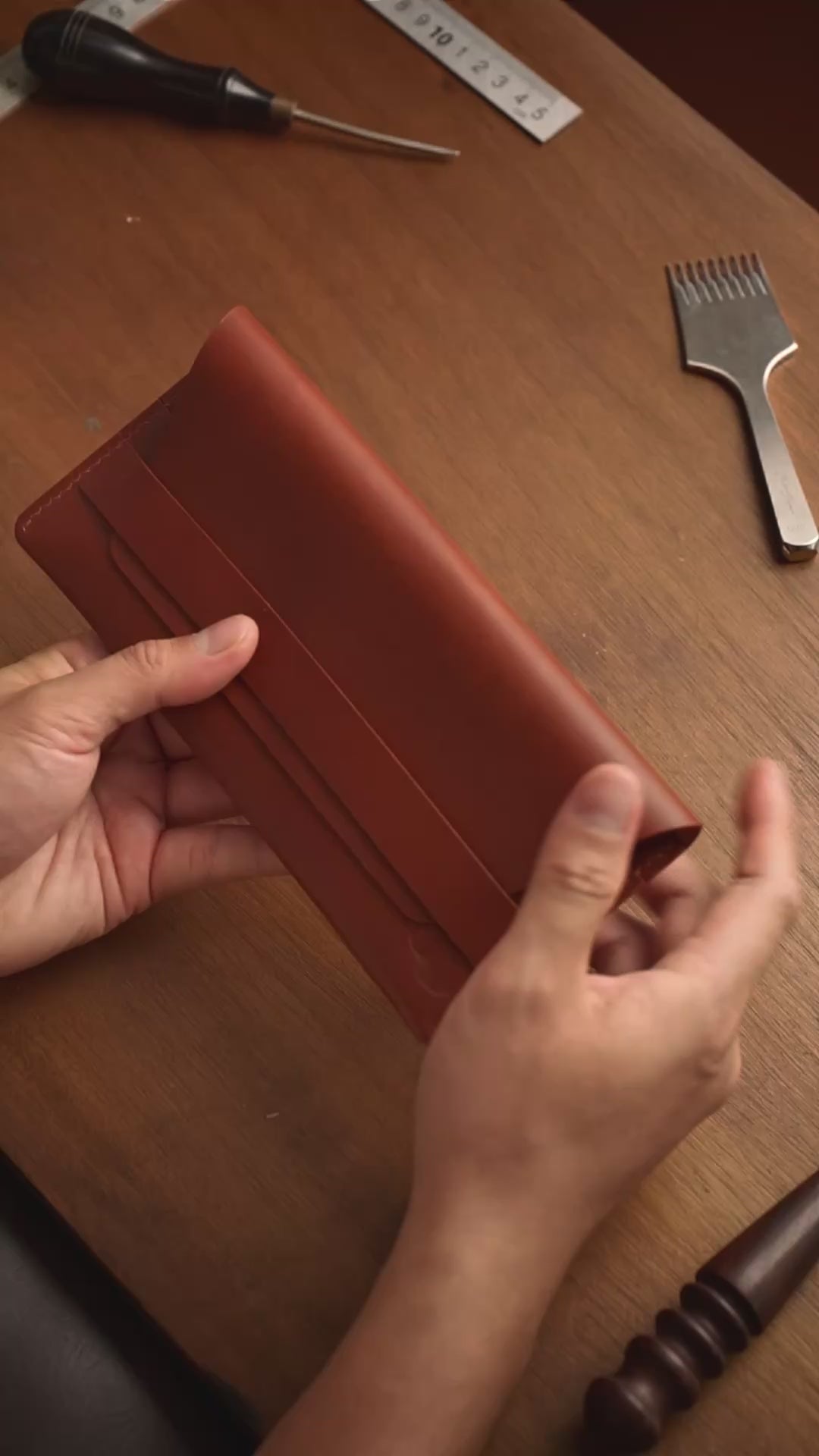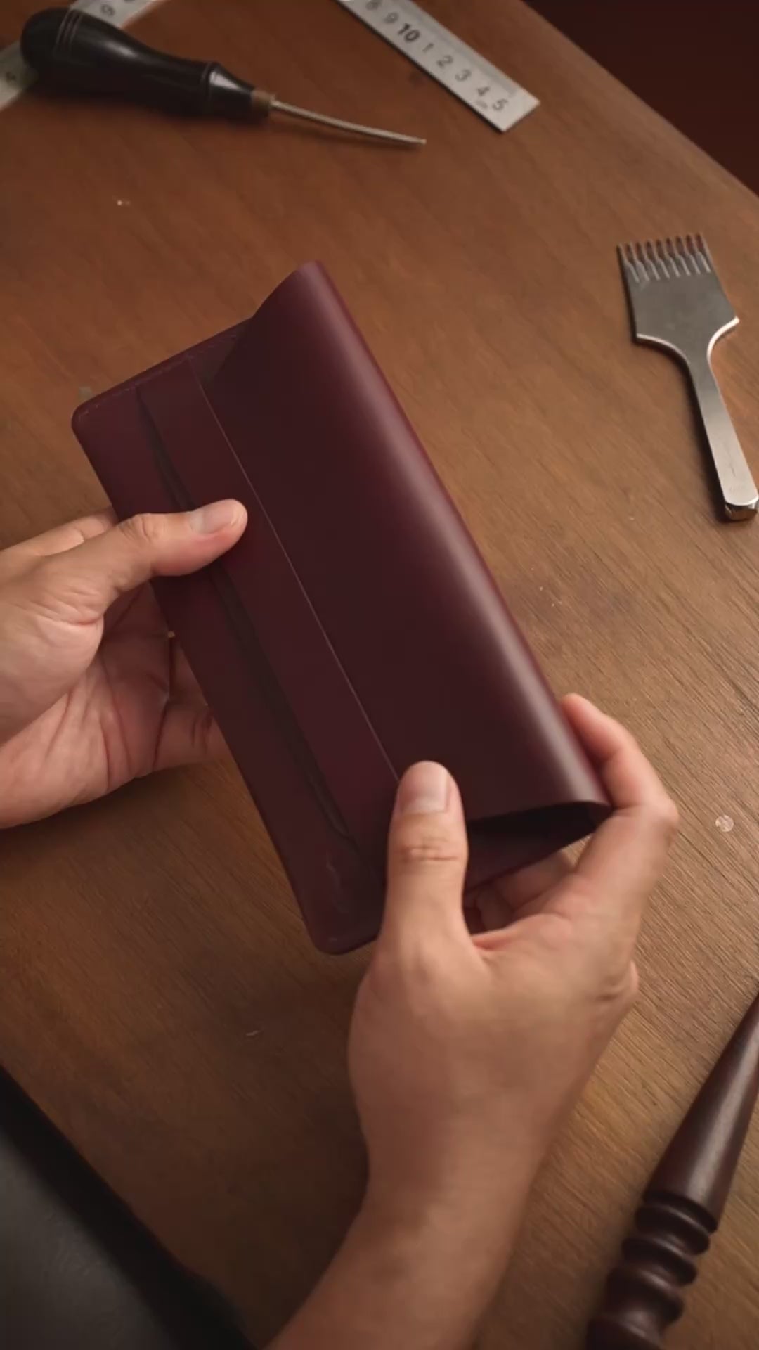 Creates a polished, rounded finish on leather edges, enhancing both the aesthetic appeal and durability of the wallet.